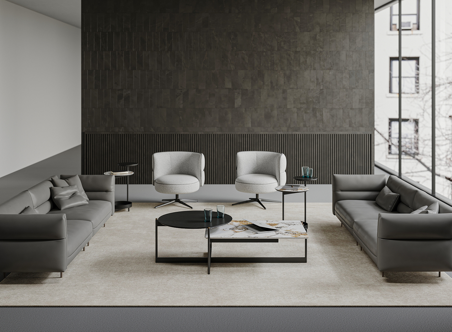 This year’s theme pavilion is presented with the unique design concept of ‘Doppelganger’ art window, which breaks the single layout of the traditional exhibition and creates a theme pavilion full of layered sense and artistic aesthetics of the office environment.
