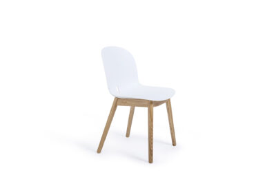 It is available in different frames: 4 metal legs, sled, 4 wood legs and swivel four-star base with castors.