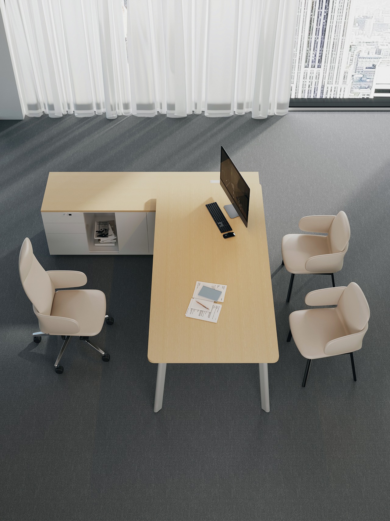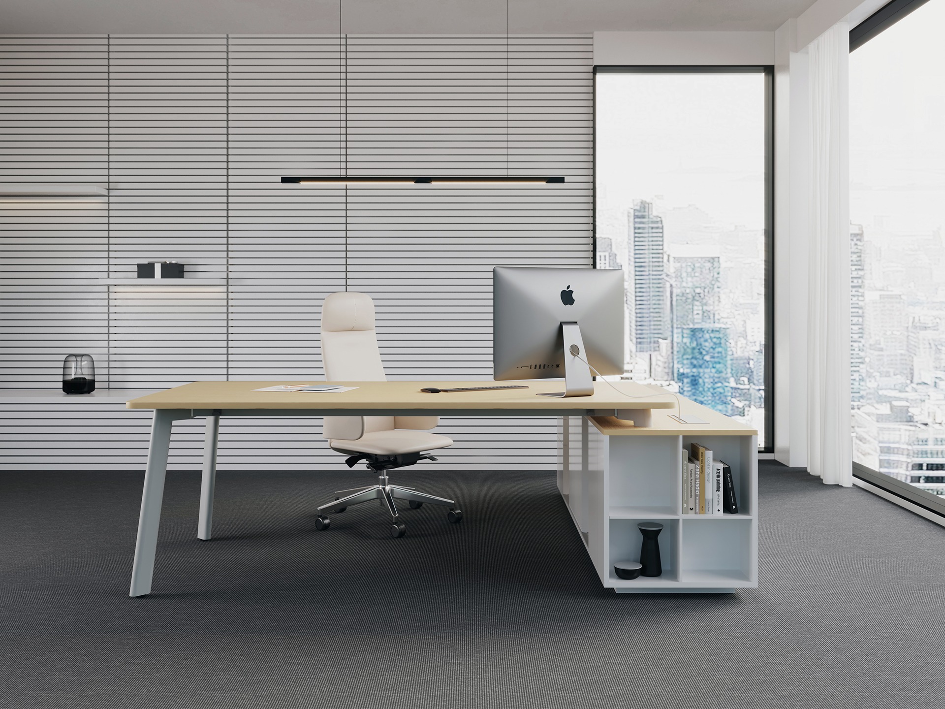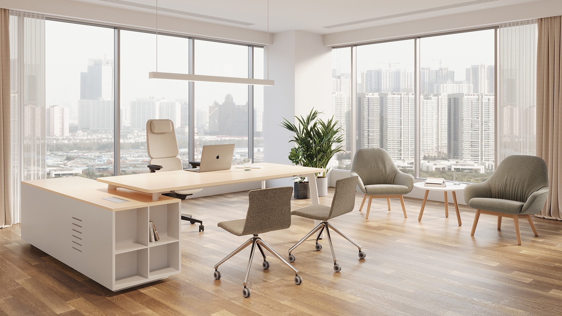 The name of SOK means Social, Office, and Kitchen. It is a desk system, but at the same time it breaks the rules and can be used in three spaces. It provides one space with a multi experience. It can become a necessary product for different spaces: entertainment, office, leisure … It is characterized by great flexibility. Partition screen, power rail and other accessories can be freely configured with SOK system. The innovative fan-shaped partition can be “opened and closed”, from the work area to the dining area, to the private area, and … why not become an entertainment area in a few simple actions? Abundant accessories and perfect structure undoubtedly make the SOK series more flexible and can be customized to each environment.
